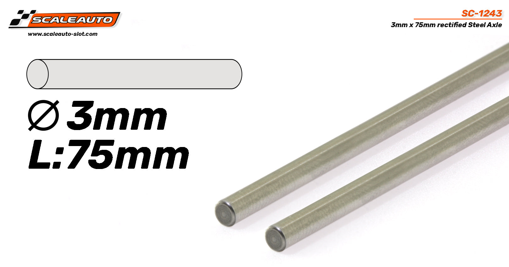 Scaleauto SC-1243 - Eje de acero rectificado - 75 mm x 3 mm - par