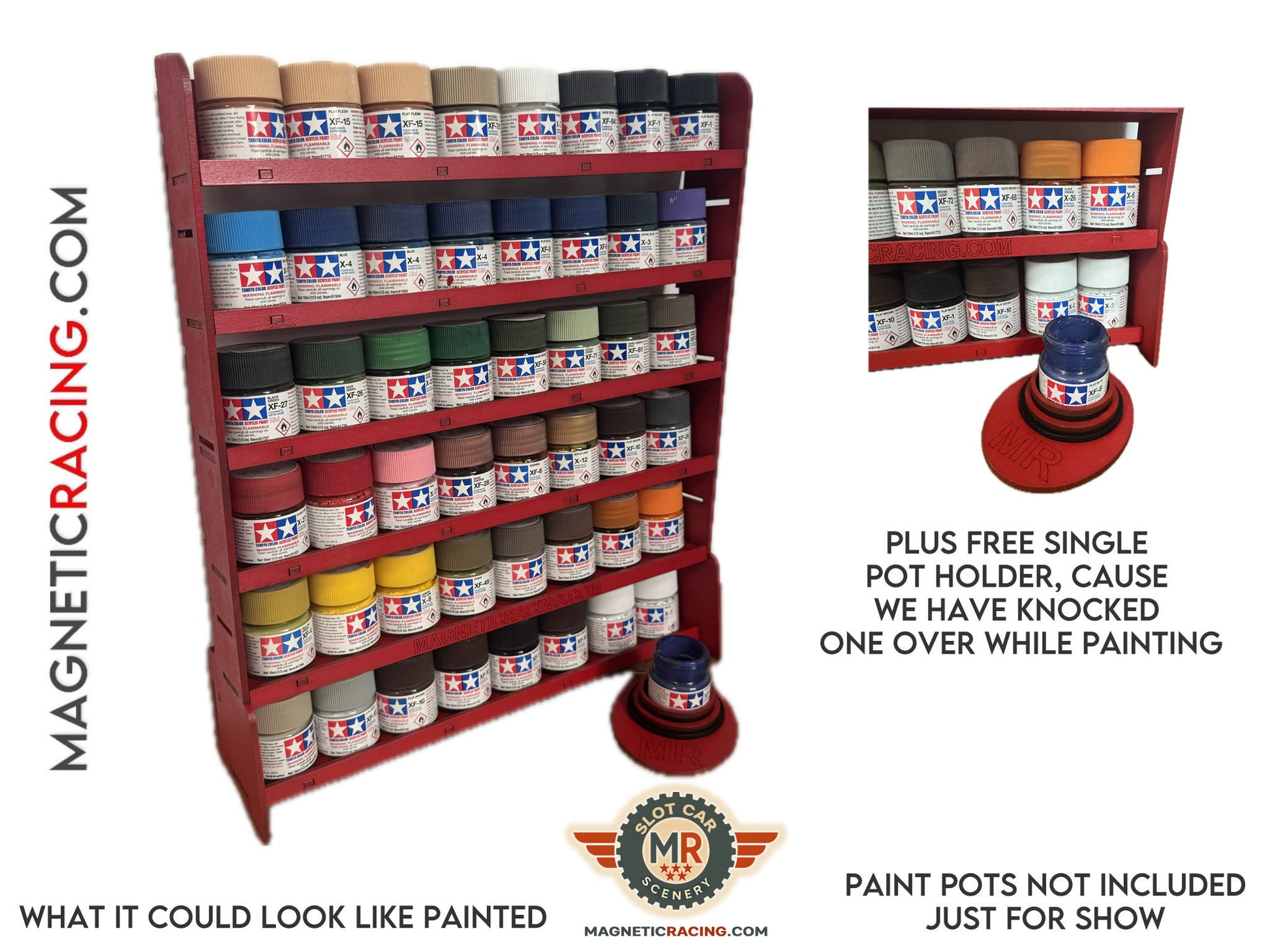 Este suporte para potes de tinta é versátil, você pode montá-lo com 6 prateleiras para potes Tamiya ou 4 prateleiras para potes do tamanho Vallejo,